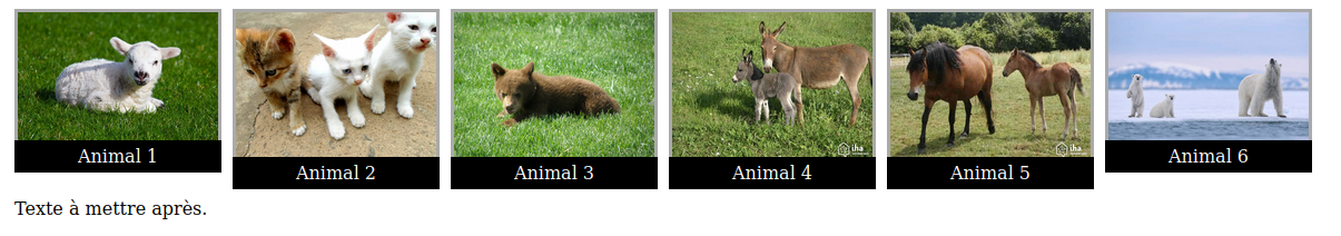 par exemple les six boîtes contenantles titres des images.