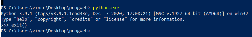 en ligne de commande. Pour cela, il suffit de taper python.exe.